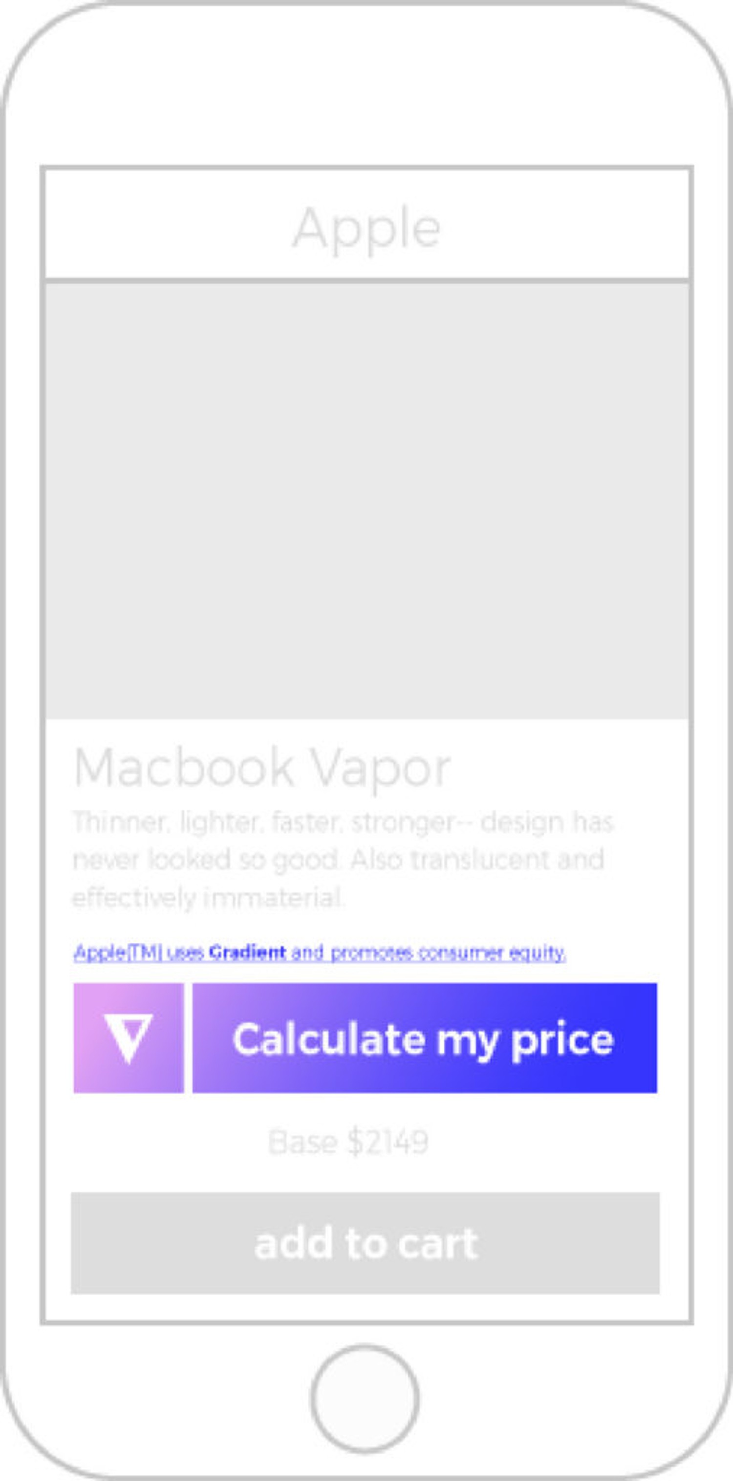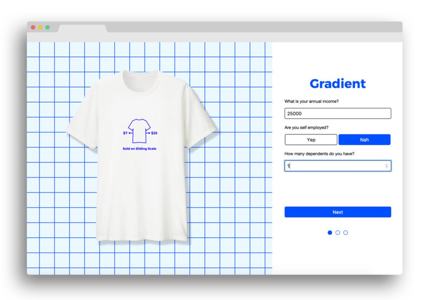 Concept pitch for Gradient at New Inc Demo Day summer 2016. Photo: NEW INCGradient project outline. Photo: Hello Velocity“Designing pricing systems for economic equity,” a panel at the 2016 Seattle Design festival organized by Hello Velocity with Natasha Marin and Josephine Devanbu. Photo: Natasha MarinA rudimentary sliding scale prototype, used as a point-of-sale system at the 2016 Internet Yami-Ichi, constructed as part of a design research process. Photo: Hello VelocityHello Velocity’s past practice has included several mass-audience web stunts. Bitelabs was a satirical biotech startup, soliciting celebrity biopsies in order to grow their flesh in vitro and produce artisanal salami. Covered in all major tech press, Bitelabs raised questions around celebrity culture, startup aesthetics, and bioethics. Image: Hello VelocityHello Velocity’s past practice has included several mass-audience web stunts. The McMass Project attempted to crowdfund $1M to purchase a McDonald’s franchise to a failing church. Combining design solutionism with religious commercialization, the McMass Project received interest from a half-dozen interested churches, and became the top Google search result for the word “McDonald’s,” which subsequently cease-and-desisted the project. Image: Hello VelocityEarly stage design mockup for Gradient as an e-commerce plugin. Image: Hello VelocityEarly stage design mockup for Gradient as an e-commerce plugin. Image: Hello VelocityA simple image with an important message. Image: Interaction Institute for Social Change | Artist: Angus MaguireWorking hard or hardly working? The Hello Velocity team hard at work navigating time zones in New York and Seattle. Photo: Hello Velocity