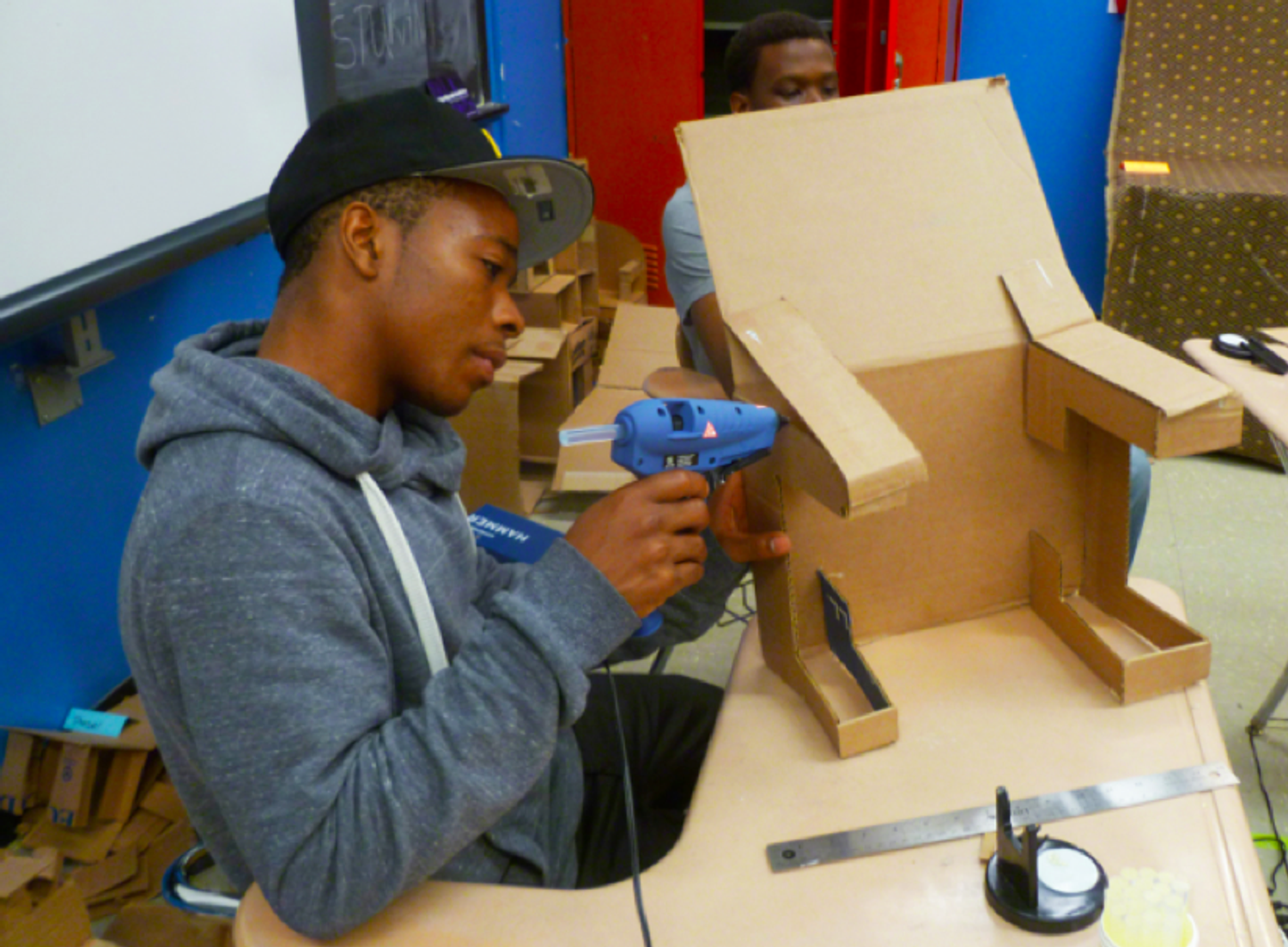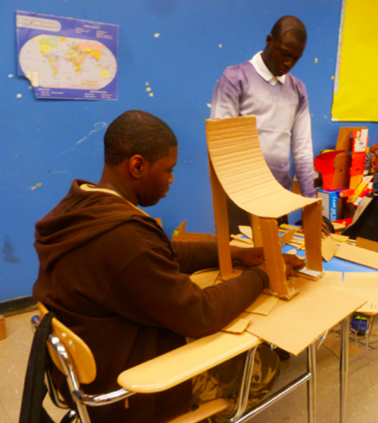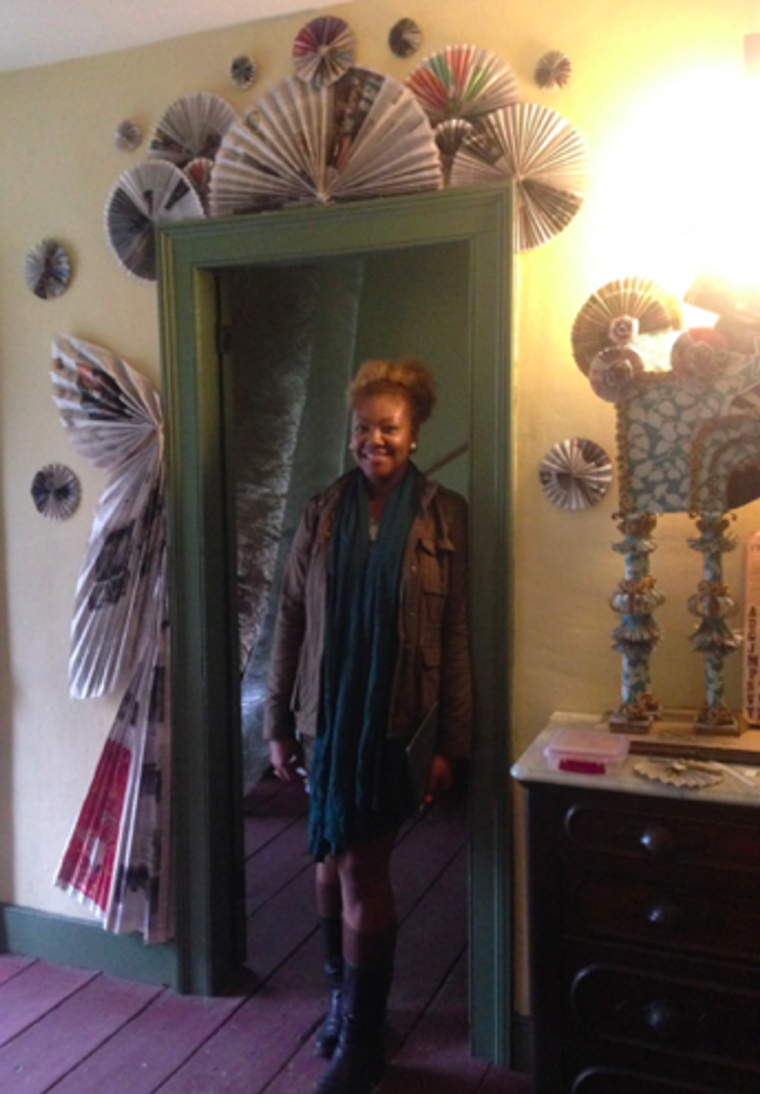 Sistah Paradise: The Lead Mystical African (Haitian Aesthetic) American Folk Character, for rural, urban and suburban bedtime medicinal folktales and contemporary bedtime medicinal lullabies. Photo: Xenobia BaileyFunktional quilt, made from woven New York Times newspaper. Fabricated at Weeksville Heritage Center as part of Funk, God, Jazz and Medicine: Black Radical Brooklyn, sponsored by Creative Time, Summer 2014. Photo: Xenobia BaileyFunktional Decorative Design, door treatment, made with folded New York Times newspaper. Boys & Girls High School collaboration with trash alchemist Xenobia Bailey at Weeksville Heritage Center as part of Funk, God, Jazz and Medicine: Black Radical Brooklyn, sponsored by Creative Time, Summer 2014. Photo: Xenobia BaileyFunktional Design exercise: Alter constructed with found cardboard boxes, fashion magazines, New York Times newspapers and brown paper bags, by trash alchemist Xenobia Bailey. Photo: Xenobia BaileyChair design for culturally relevant furniture for a Funktional Design Class conducted by Xenobia Bailey at Boys & Girls High School as part of Funk, God, Jazz and Medicine: Black Radical Brooklyn, sponsored by Creative Time, Summer 2014. Photo: Xenobia BaileyAfrican (Mali) American student, designing culturally relevant furniture from found cardboard boxes for a Funktional Design Class conducted by Xenobia Bailey at Boys & Girls High School as part of Funk, God, Jazz and Medicine: Black Radical Brooklyn, sponsored by Creative Time, Summer 2014. Photo: Xenobia BaileyAfrican (Bed-Stuy, Brooklyn) American student, designing culturally relevant furniture from found cardboard boxes for a Funktional Design Class conducted by Xenobia Bailey at Boys & Girls High School as part of Funk, God, Jazz and Medicine: Black Radical Brooklyn, sponsored by Creative Time, Summer 2014. Photo: Xenobia BaileyFunktional Design Vanity Table created by African (Jamaican) American students at Boys & Girls High School, fabricated at Weeksville Heritage Center for Funk, God, Jazz and Medicine: Black Radical Brooklyn, sponsored by Creative Time, Summer 2014. Photo: Xenobia BaileyMock-up for the structural and decorative design for a table, by African (Senegal) American design student in Funktional Design Class conducted by Xenobia Bailey at Boys & Girls High School as part of Funk, God, Jazz and Medicine: Black Radical Brooklyn, sponsored by Creative Time, Summer 2014. Photo: Xenobia Bailey Funktional Design Vanity Table created by African (Jamaican) American students at Boys & Girls High School, fabricated at Weeksville Heritage Center for Funk, God, Jazz and Medicine: Black Radical Brooklyn, sponsored by Creative Time, Summer 2014. Photo: Xenobia Bailey